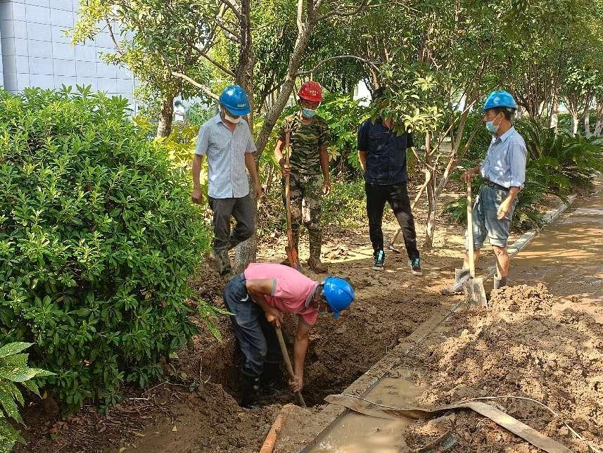 接到通知后,公司運(yùn)維部搶修人員迅速趕往現(xiàn)場(chǎng)進(jìn)行勘察,通過(guò)精準(zhǔn)定位鎖定了漏點(diǎn),并制定了搶修方案。快速挖開路面,經(jīng)排水、挖掘、清理后,搶修人員對(duì)此處破損的DN300供水管展開了搶修。他們采用“哈夫節(jié)”包接方式,將新舊管道接口成功連接。截至當(dāng)天下午3時(shí),經(jīng)過(guò)7個(gè)小時(shí)持續(xù)不間斷奮戰(zhàn),漏水供水管道搶修工作結(jié)束,經(jīng)管壓調(diào)試后恢復(fù)正常供水。