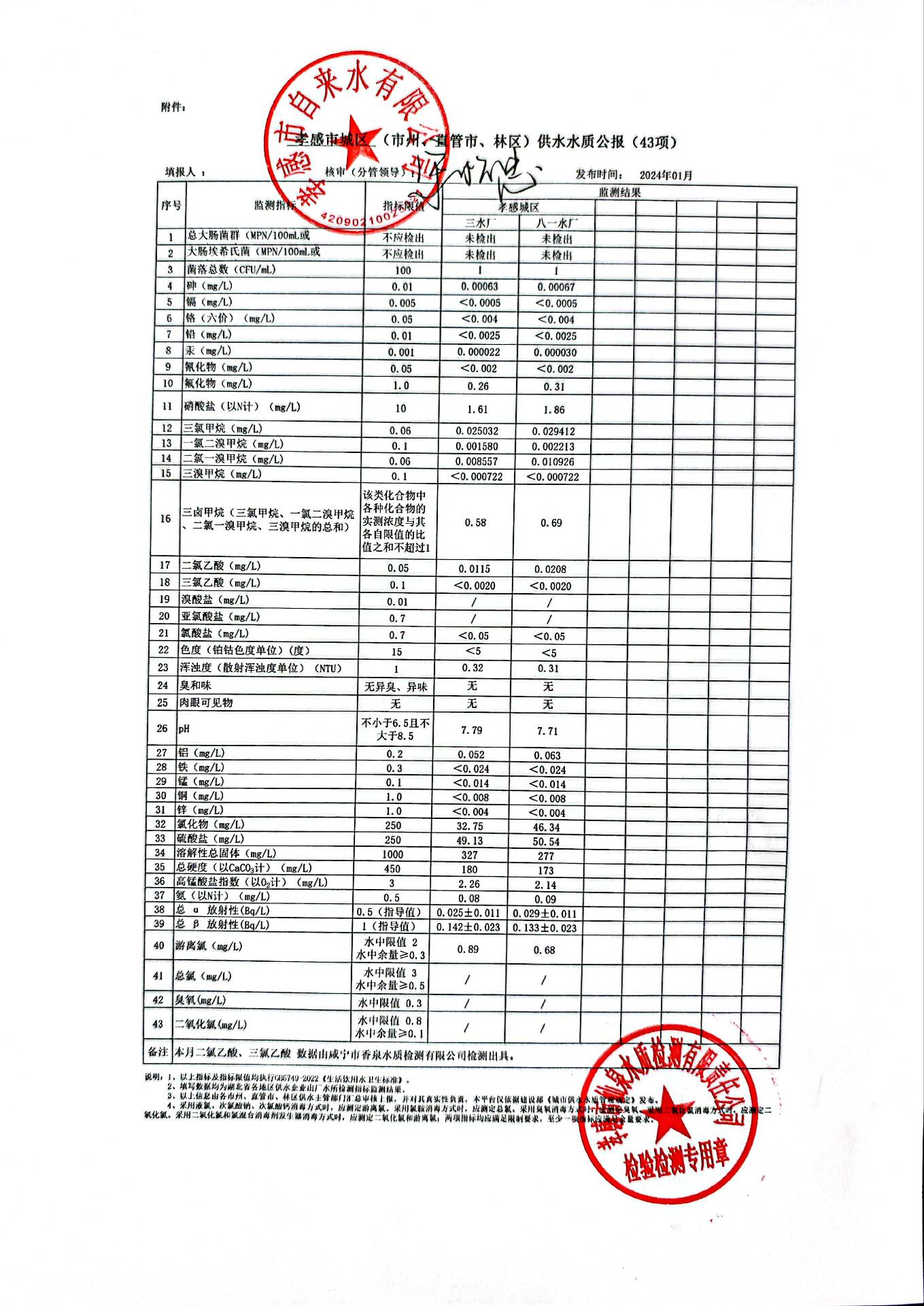 2024年1月水質報告