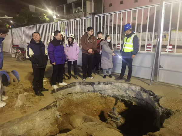 盡管寒風(fēng)凜冽,施工現(xiàn)場卻是一片繁忙景象,燈火輝煌。挖掘機(jī)械設(shè)備緊張作業(yè),工人們有序地進(jìn)行著供水管道連接前的準(zhǔn)備工作。設(shè)計造價人員仔細(xì)觀察,詳細(xì)記錄,并不時向現(xiàn)場施工人員和技術(shù)人員提出問題,深入掌握施工流程和關(guān)鍵技術(shù)。
