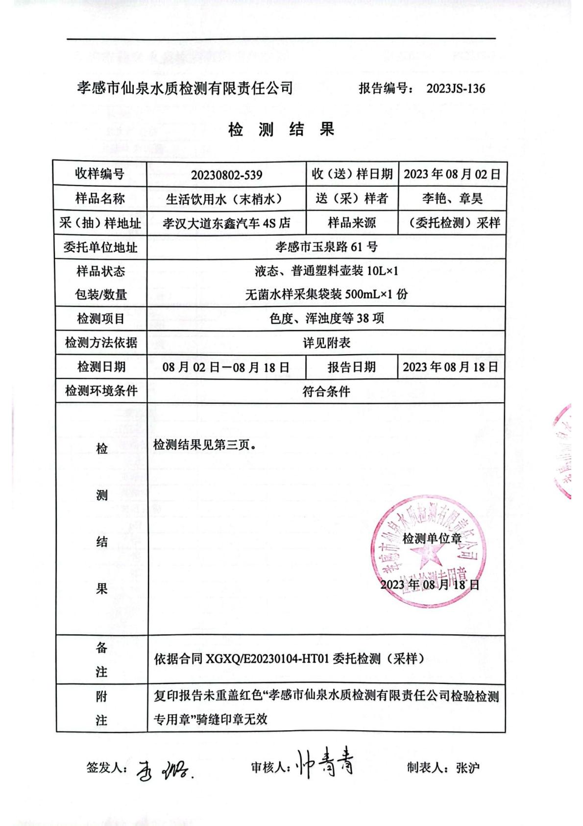 2023年8月檢測(cè)報(bào)告