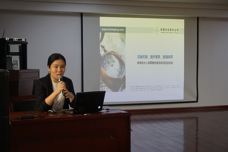 啟動會上,副經理余文峰從公司收入分配現狀談起,就目前公司薪酬制度存在的問題與建議進行現場提問。隨后,基業昶青管理咨詢項目經理張靜對咨詢公司情況、咨詢項目經驗和咨詢團隊成員構成進行了簡單介紹,分析了國企薪酬改革的重點與難點,并就項目總體計劃與工作安排、配合事宜進行了詳細的講解。