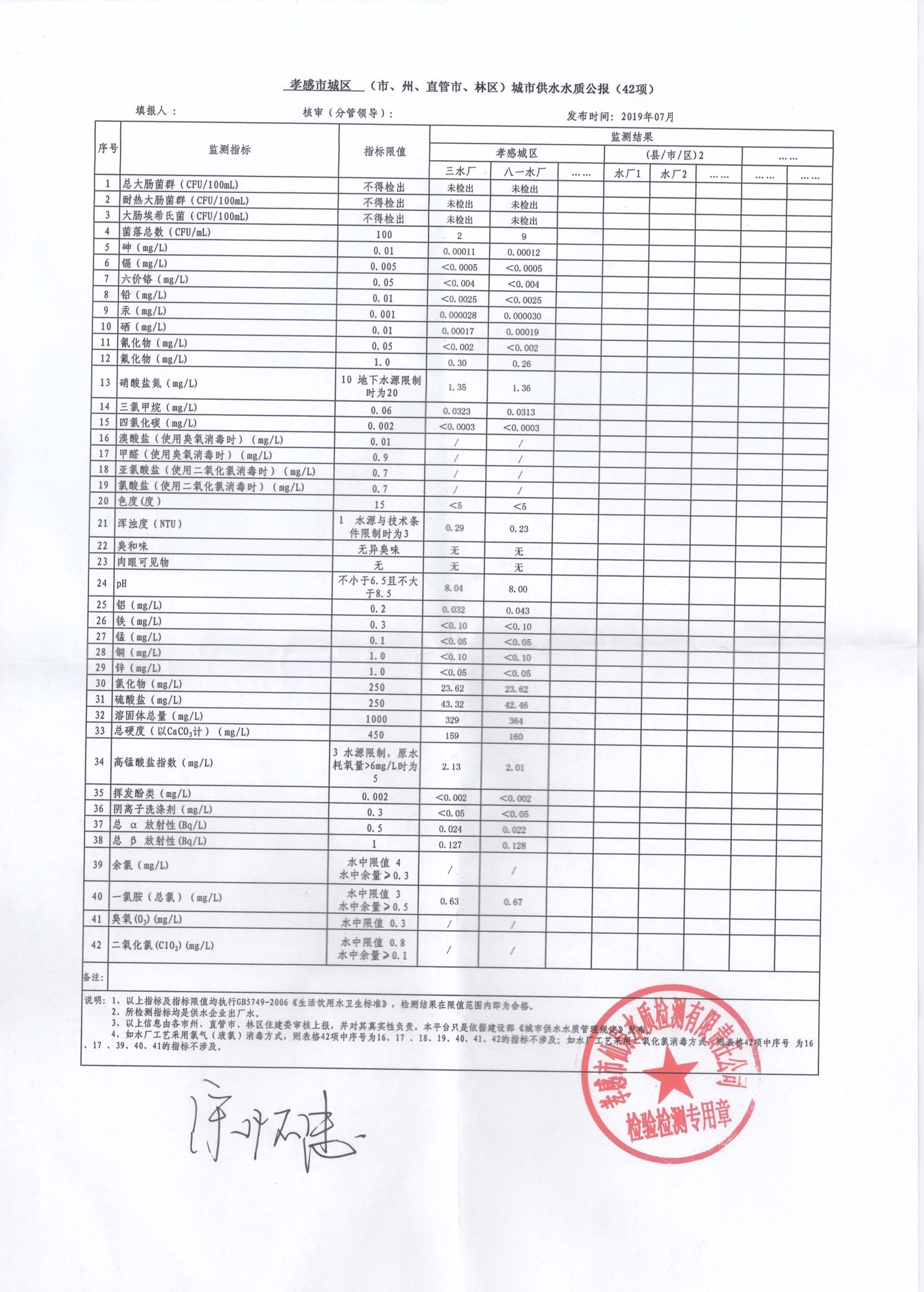 2019年7月水質報告