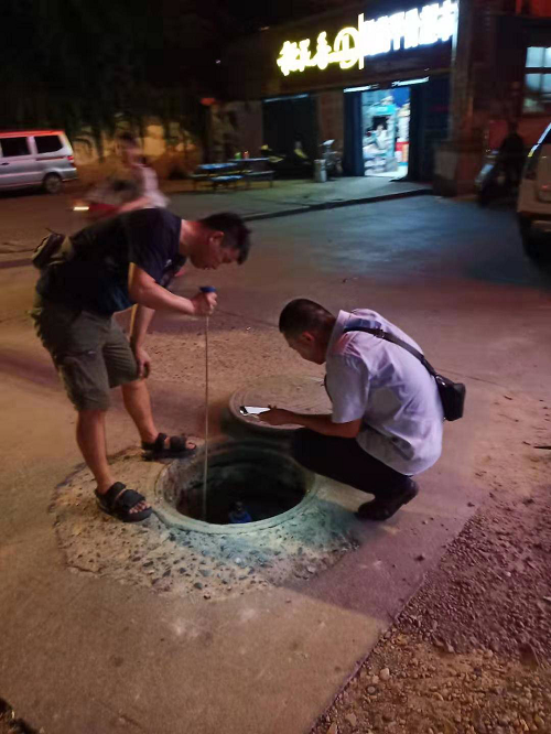 連晴的高溫天氣,加之之前遭受暴雨襲擊,地下土層凹陷,極易出現供水管道脹裂、接頭松動等漏水現象,影響居民正常用水。早一秒發現管道暗漏點,就能夠大大降低供水管網爆漏的幾率,也能很大程度上減少水資源的浪費。為減少外界干擾,探漏工作一般選擇在夜間用水量最小,車輛和行人最少的時段進行(晚11點-凌晨4點)。公司稽查科探漏員們踏遍城市的犄角旮旯,在炎炎夏日的夜晚,用他們靈敏的耳朵,靜心對管道進行著“體檢”,守護著城市的“血脈”安全。