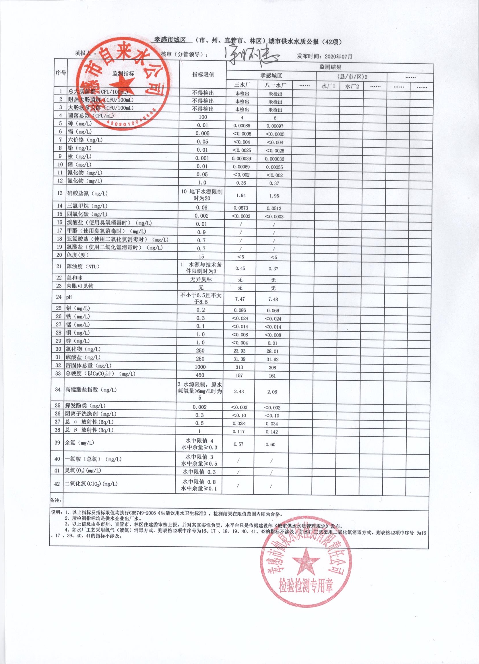 2020年7月水質報告